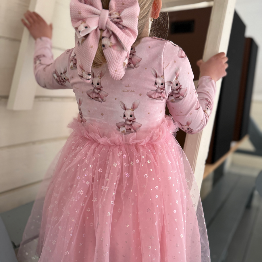 Soft and cozy dress with a whimsical ballerina bunny print